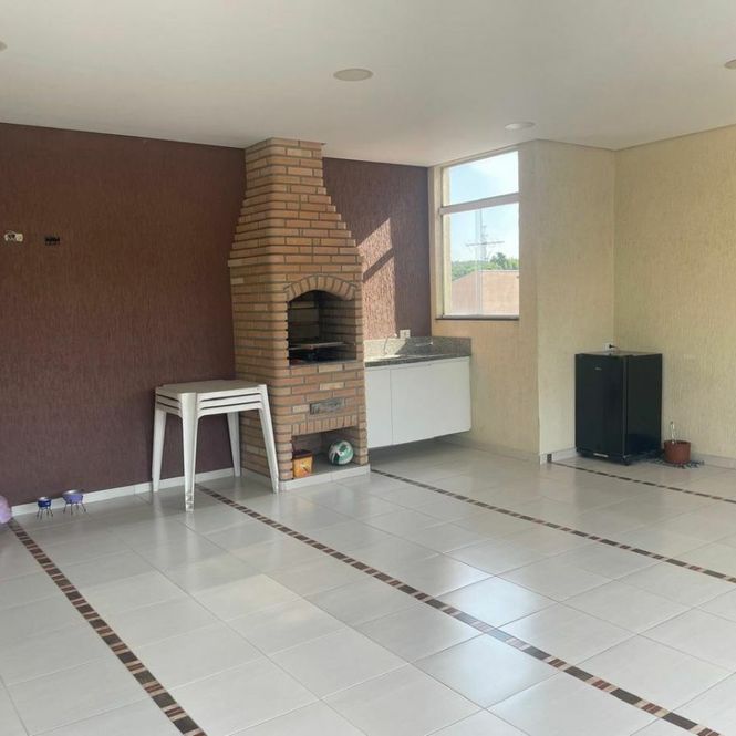 Área gourmet com churrasqueira, banheiro e mais um cômodo versátil (home office, depósito ou espaço multiuso)