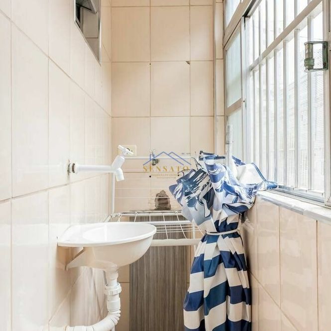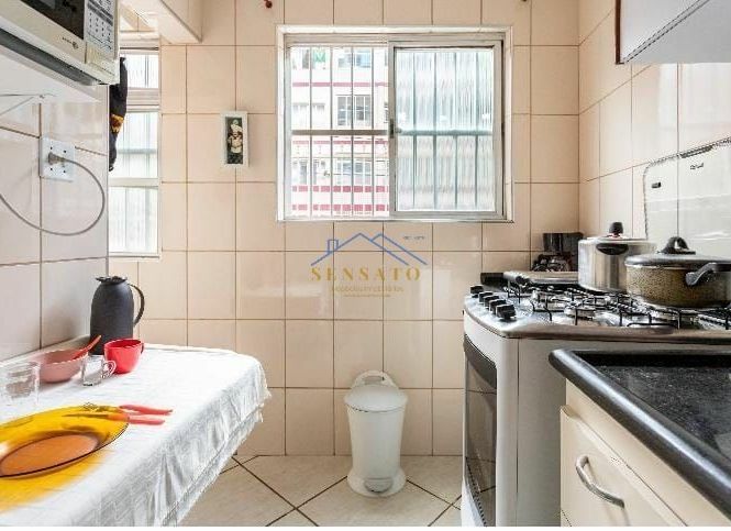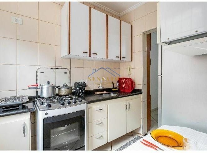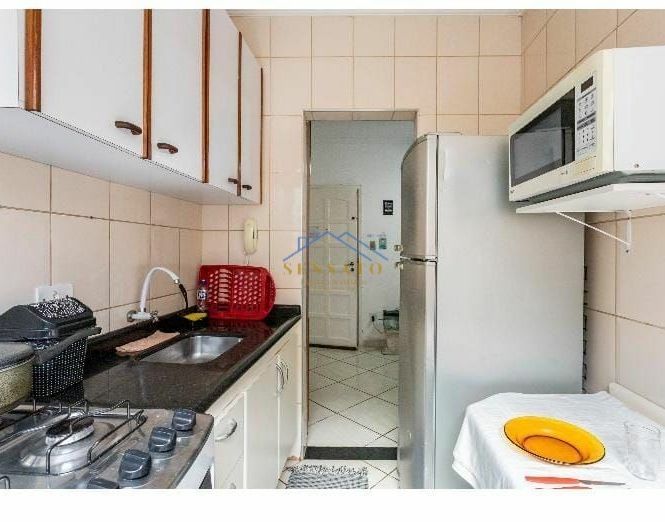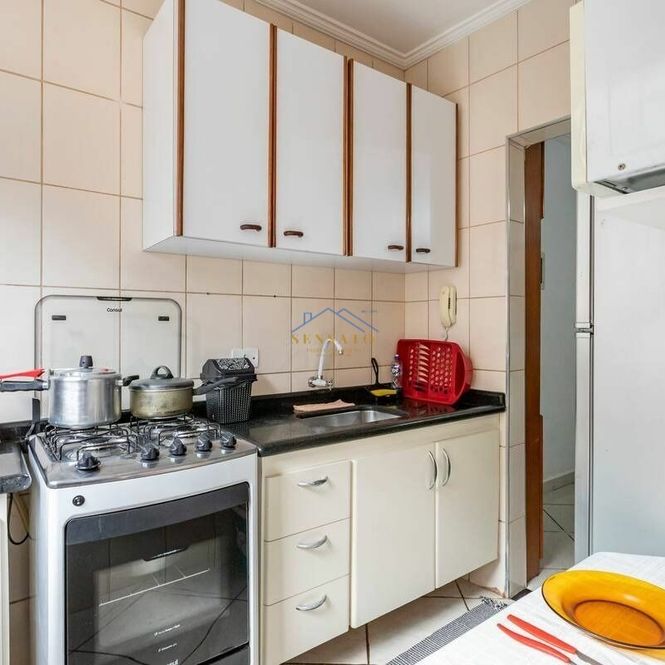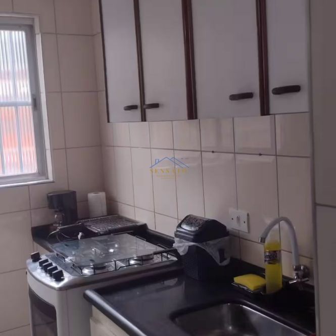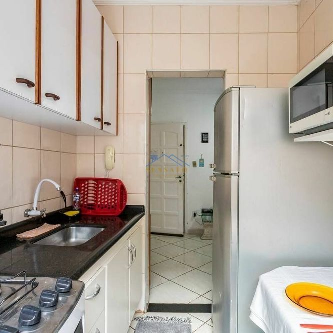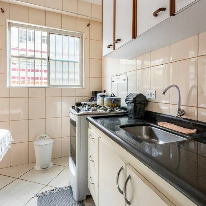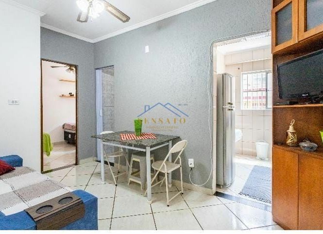 Apartamento com 1 dormitório, sala, cozinha, banheiro e área de serviço.