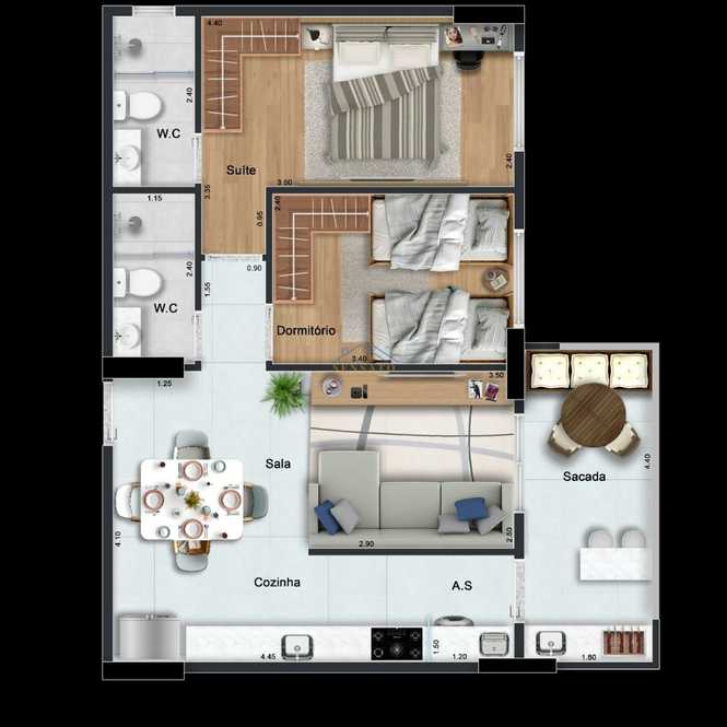 - Plantas de 59,04 m² a 90,24 m², com opções perfeitas para cada estilo de vida.